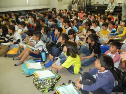 北野清掃工場では、工場長さんを始め、たくさんの職員のみなさんが出迎えてくださいました。靴の並べ方も、「とても上手だね。」と誉められていました。さすが4年生です。