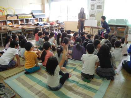 今年も、図書ボランティアの皆さんによる読み聞かせが始まりました。もちろん先生方も参加します。第1回目もたくさんの子供たちが来てくれました。