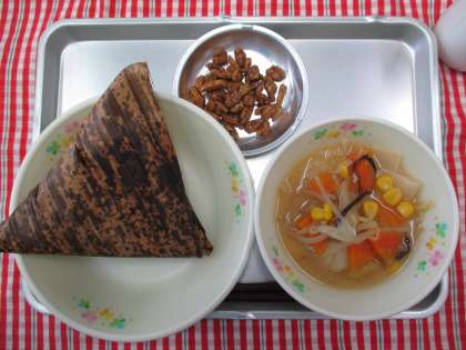 ちまきは給食室で包んで蒸しました。