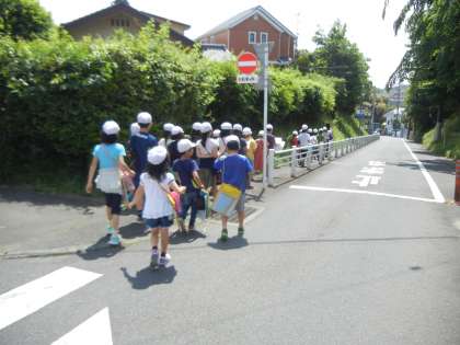 5月12日、3年生が社会科の学習で、町探検に出ました。各自が調べたい地域3方向(めじろ台方面、狭間方面、館方面)に分かれ、歩きました。