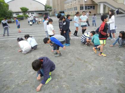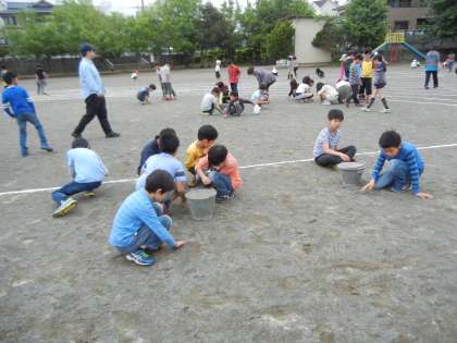 5年生は「椚田ソーラン」を裸足で踊るため、一生懸命拾っていました。