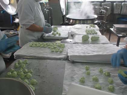 今日の給食では桑の葉の粉を使い 団子を作りました。