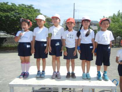 1年生は「はじめの言葉」を言います。上手に言えました。