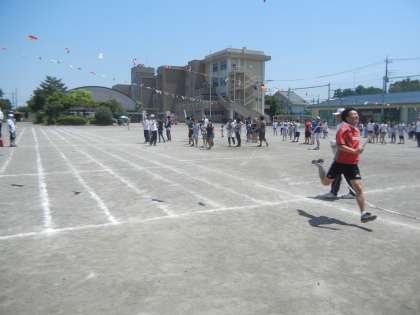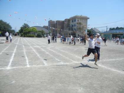 今年のリレーのアンカーは、3人の先生が任されました。最後まで全力で走りました。