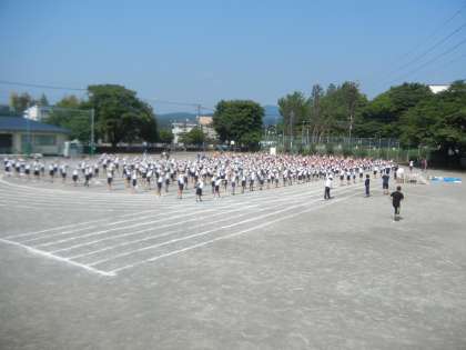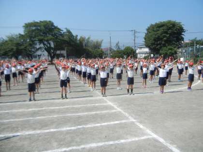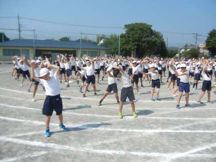23日も、1時間目は全校練習でした。準備運動の練習をしています。
