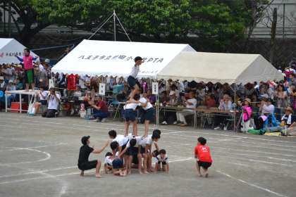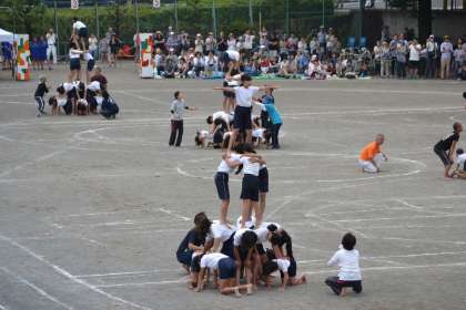 前半の山場は、子供たちが協力して取り組んだ集大成でもある「タワー」です。