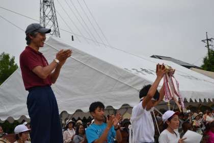 死力を振り絞って応援し続けた白組団長に準優勝トロフィが贈られました。白組も、よく頑張りました。