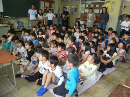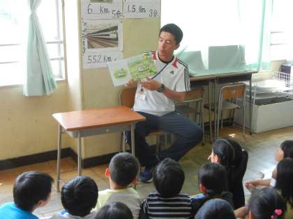 先生方も読み聞かせをしてくれました。写真は1年生の先生です。
