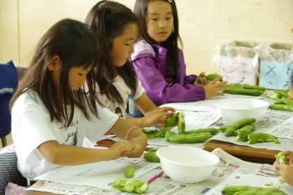 そら豆の皮むき体験(1年生)2