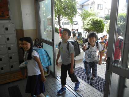 ちょっとお疲れ気味の高学年に対して、中学年は元気に登校していました。