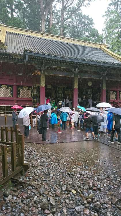拍子木の音が聞こえてきます雨具を身に付けたり外したり