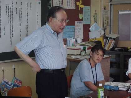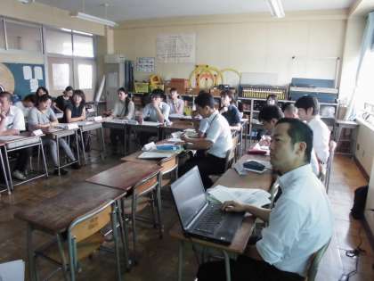 7月25日、本校で、夏の教員研修会を開催しました。講師の先生をお招きし、現在進めている国語の指導法向上に関する研修会です。