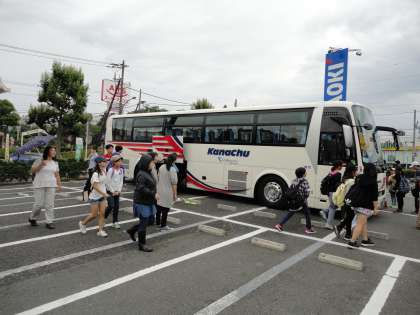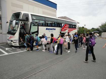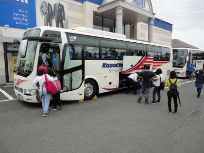 バスに乗って出発です。保護者の皆さん、先生方も大勢見送りに来てくれました。