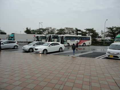 途中のパーキングエリアで、トイレ休憩です。いよいよ雨が降り出しました。