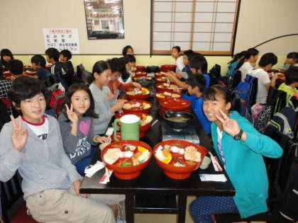朝早く出発した子供たちは、お腹ぺこぺこのようでした。