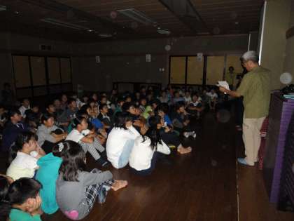 理科の先生が、怖い話をしてくれました。子供たちは盛り上がっていました。
