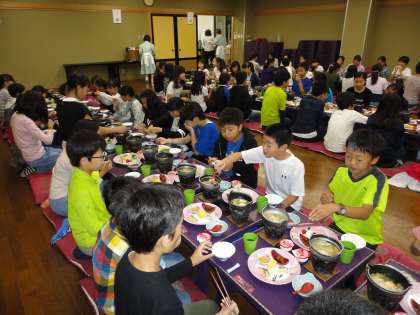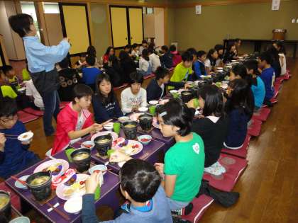 まだ眠そうな顔をして、朝食をとっている子もいます?