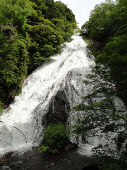 湯滝を下から見た風景です。迫力がありますね。