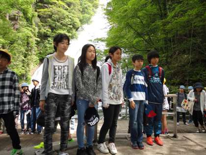 湯滝前で、行動班写真を撮りました。