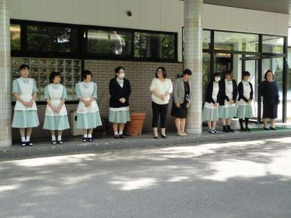 宿舎を出発します。閉校式が終わり、見送りをしていただきました。