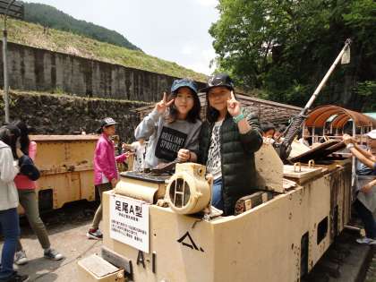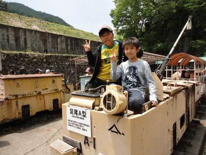 外には、実際に使われたトロッコなどが、置かれていました。