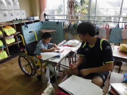 足をけがして、体育ができない子には、担任以外の先生がついて、勉強を見てくれていました。