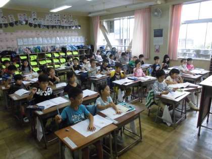 1年2組の授業風景です。漢字の勉強をしていました。