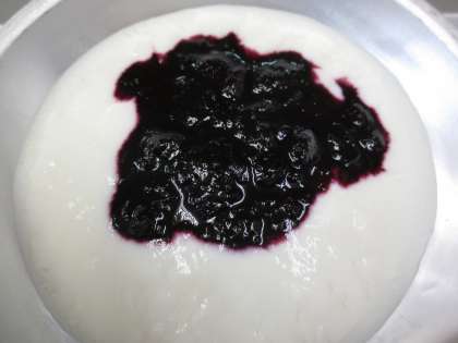 今日のブルーベリーは 給食委員会が 学校の横断歩道前の澤田園へ行って摘んできたものを給食室でソースをつくりました。