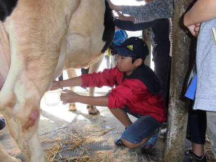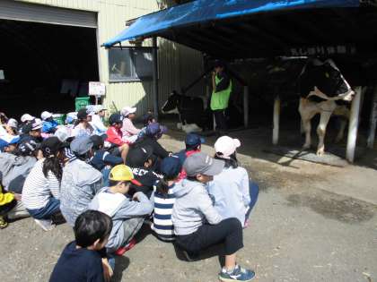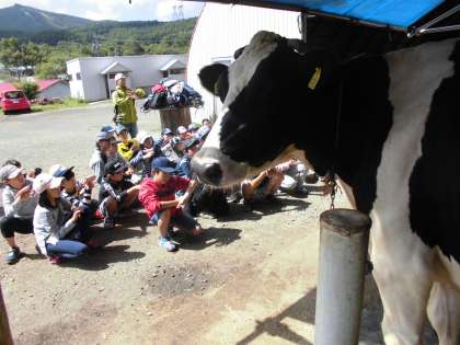 乳しぼりをする前に、命のつながりの話を、乳牛の一生を通して説明してくれます。