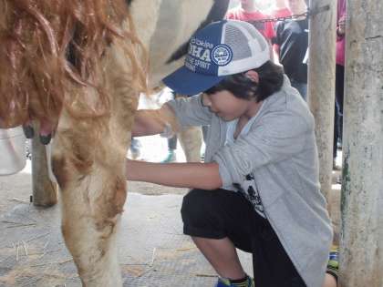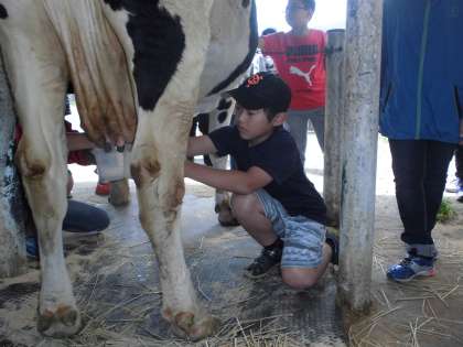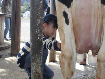 ですから、近くに牛の糞があろうが、子供たちは気にせず、真剣に乳しぼりをしています。