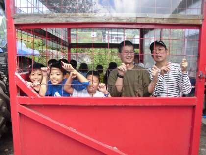 野菜になった気分で、トラクターに揺られます。
