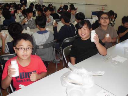 ですが、うまくいくと、容器の底にバターができていて、うれしさがこみ上げてきます。どの子もうまくいったようです。