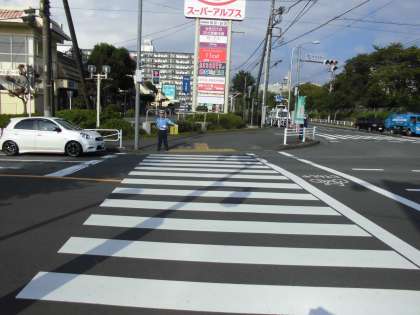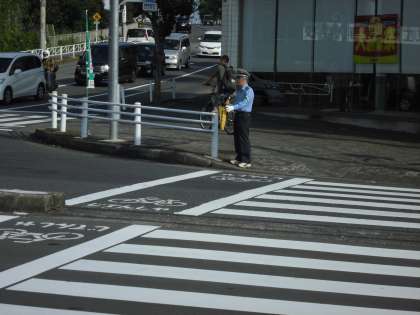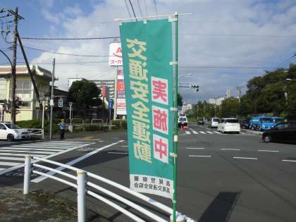 9月下旬に実施されていた交通安全旬間の見守りの様子です。交通安全協会の方が交差点に立ってくださっていました。