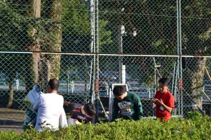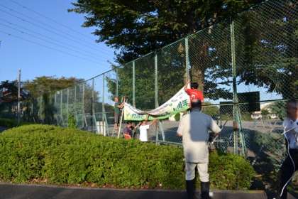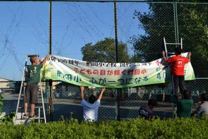 9月29日、開校40周年記念横断幕を敷地西側フェンスに取り付けました。