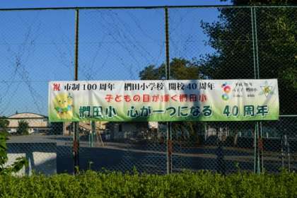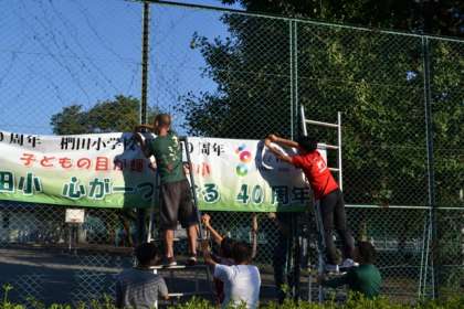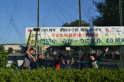 青い空によく映えています。40周年キャラクターの「くぬちゃん」も入っています。