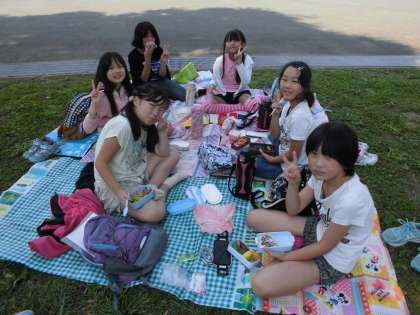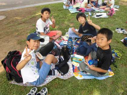 豊洲にある「そなエリア東京」横の芝生広場でお弁当です。