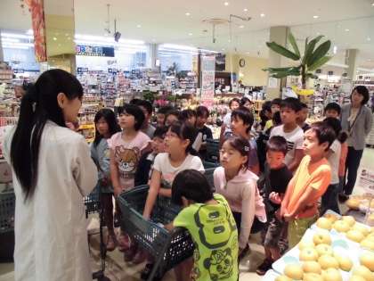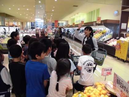栄養素の学習後、栄養士の先生から出された「ミッション(指令書)」に従って、店内での買い物体験をしました。