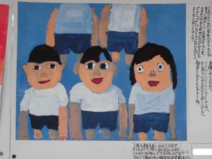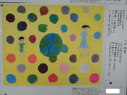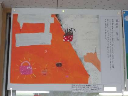 6年生が図工で描いた作品です。「詩からイメージして」作品を描きました。写真は6年1組の作品です。
