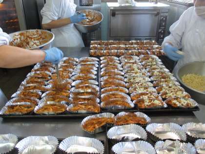 ラザニアは1つ1つカップに入れてオーブンで焼きます。