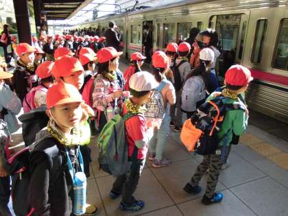 10月27日、1年生が多摩動物公園に遠足に行きました。めじろ台から京王線に乗り、多摩動物公園までです。車内でも、お行儀よく乗ることができました。