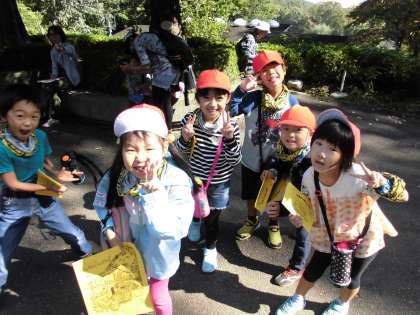 園内では、集合写真を撮った後、班ごとに分かれて、スタンプラリーをしました。子供たちは、協力しながら、各ポイントにいる先生たちを見つけ、スタンプをうれしそうに押してもらっていました。