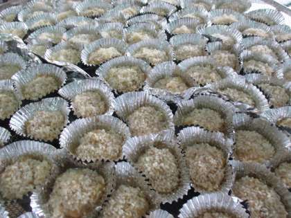 もち米をまわりにつけて蒸します。