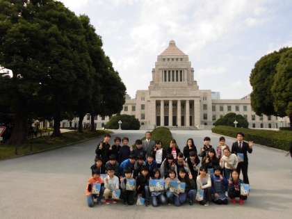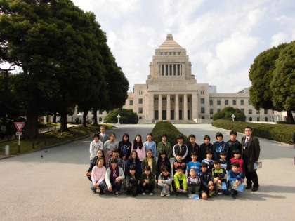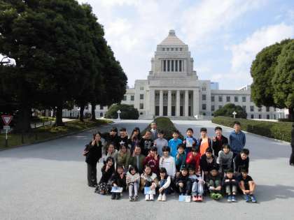 帰り際に、議事堂をバックに、クラス写真を撮りました。