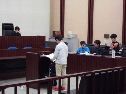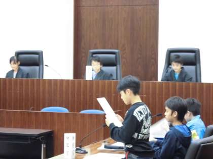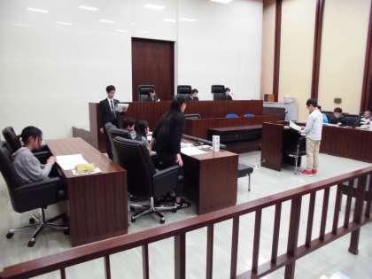 3つ目の見学先は、東京高等裁判所でした。ここでは、模擬裁判プログラムを体験できました。終了後には、裁判籍にも全員が入れてもらいました。