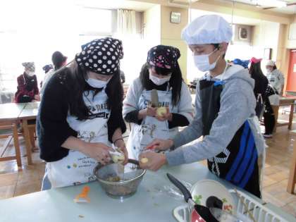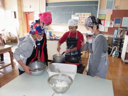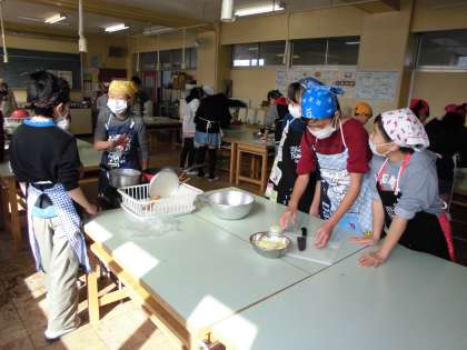 2組と同じ20日、6年3組も調理実習を行っていました。