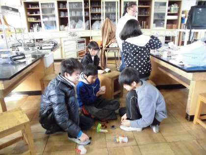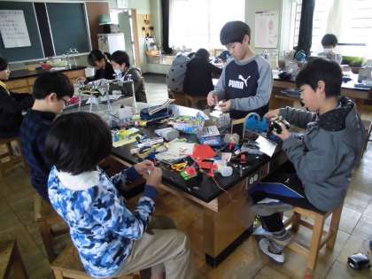 理科室では、6年生がモーターを利用して、電気の学習をしていました。