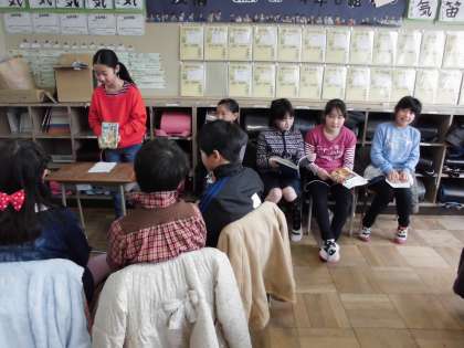 1日の学校公開では、4年3組でもブックトークを行っていました。