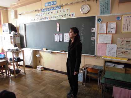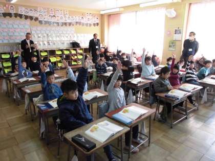 2月5日、1年3組に巡回訪問指導の先生が来られました。年間を通して、新規採用の先生の授業を参観し、アドバイスをしてくれます。