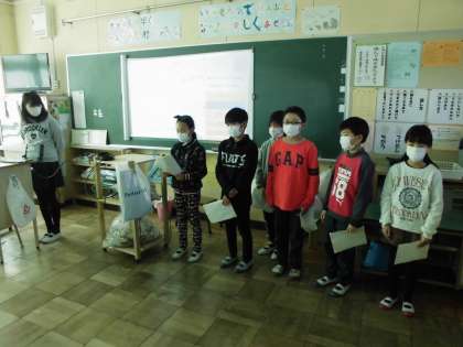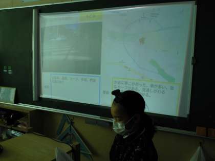 2月7日、5年生が1月26日に行った「安全マップ校外学習」のまとめ発表会を、3年生に行いました。