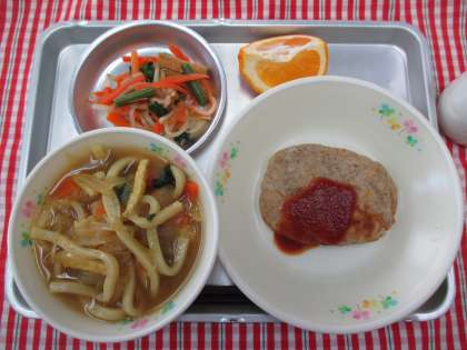 カレー南蛮 じゃがもち 彩り和え くだもの 牛乳